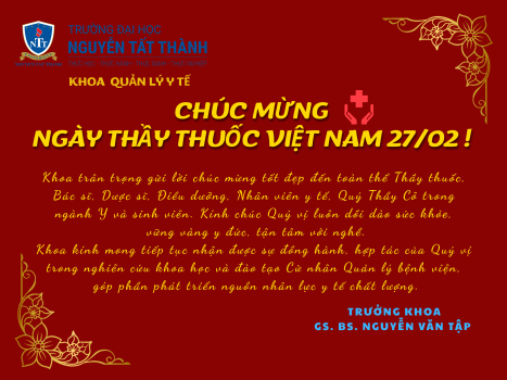 Nhân dịp đầu xuân năm mới, Khoa Quản lý Y tế – Đại học Nguyễn Tất Thành trân trọng gửi lời chúc mừng năm mới...