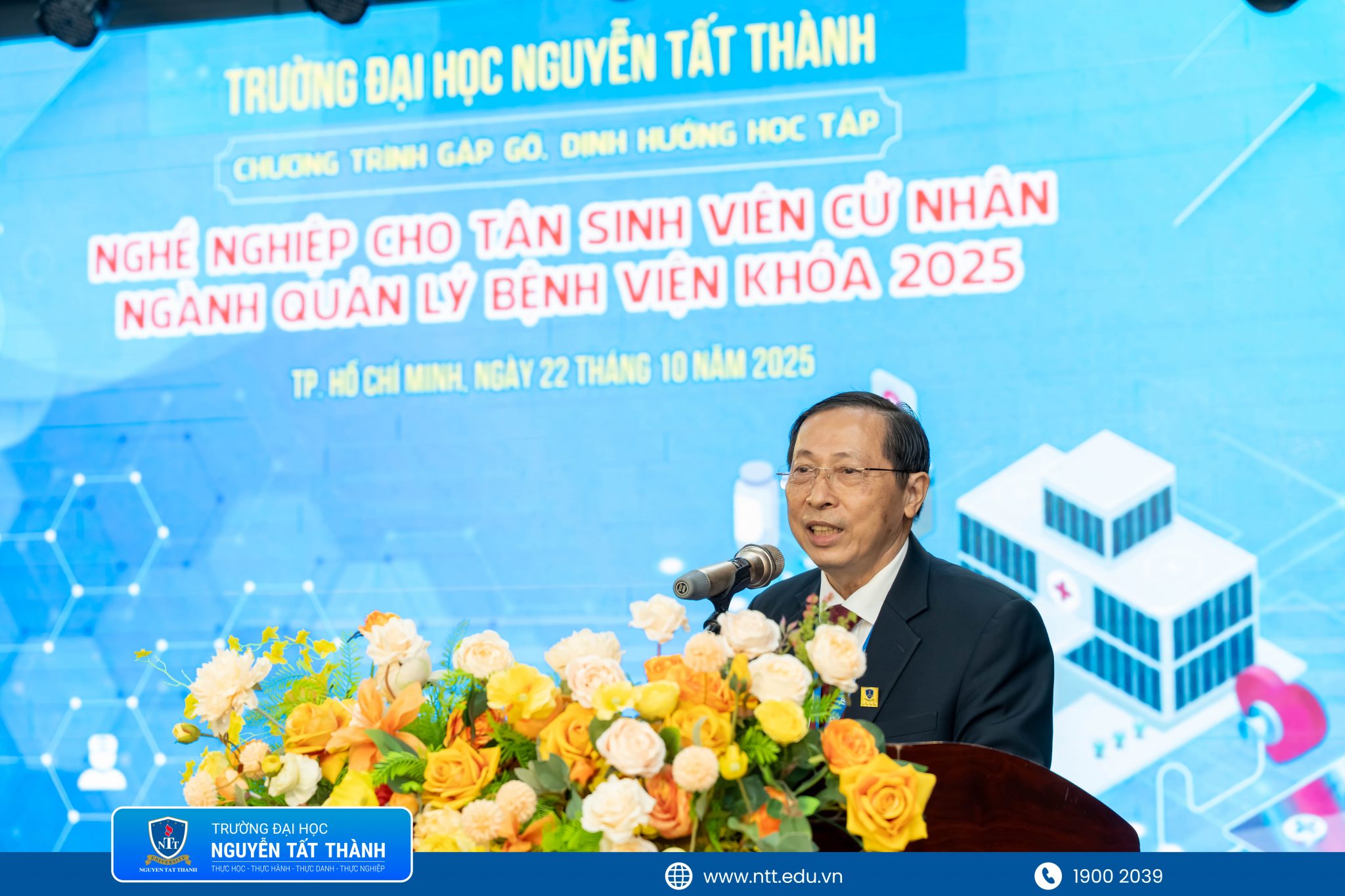 Đại diện Ban chủ nhiệm khoa Quản lý Y tế, GS.TS. Nguyễn Văn Tập – Trưởng Khoa đã gửi lời chào, lời cảm ơn chân thành đến các em tân sinh viên đã tin tưởng lựa chọn Trường ĐH Nguyễn Tất Thành và ngành Quản lý bệnh viện làm nơi khởi đầu hành trình tri thức, nuôi dưỡng ước mơ trở thành nhân viên y tế cống hiến cho cộng đồng.